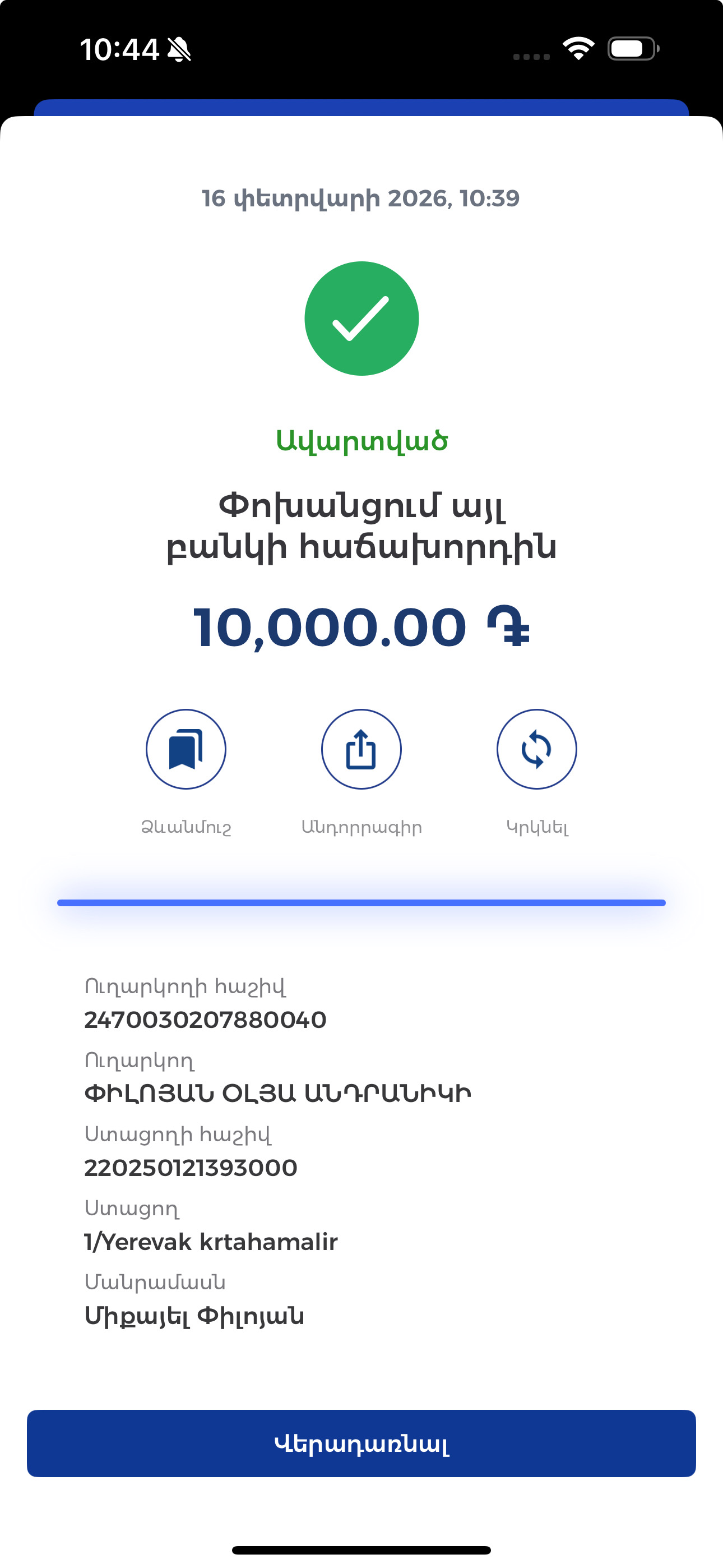 I դասարանցու գրանցման հայտ