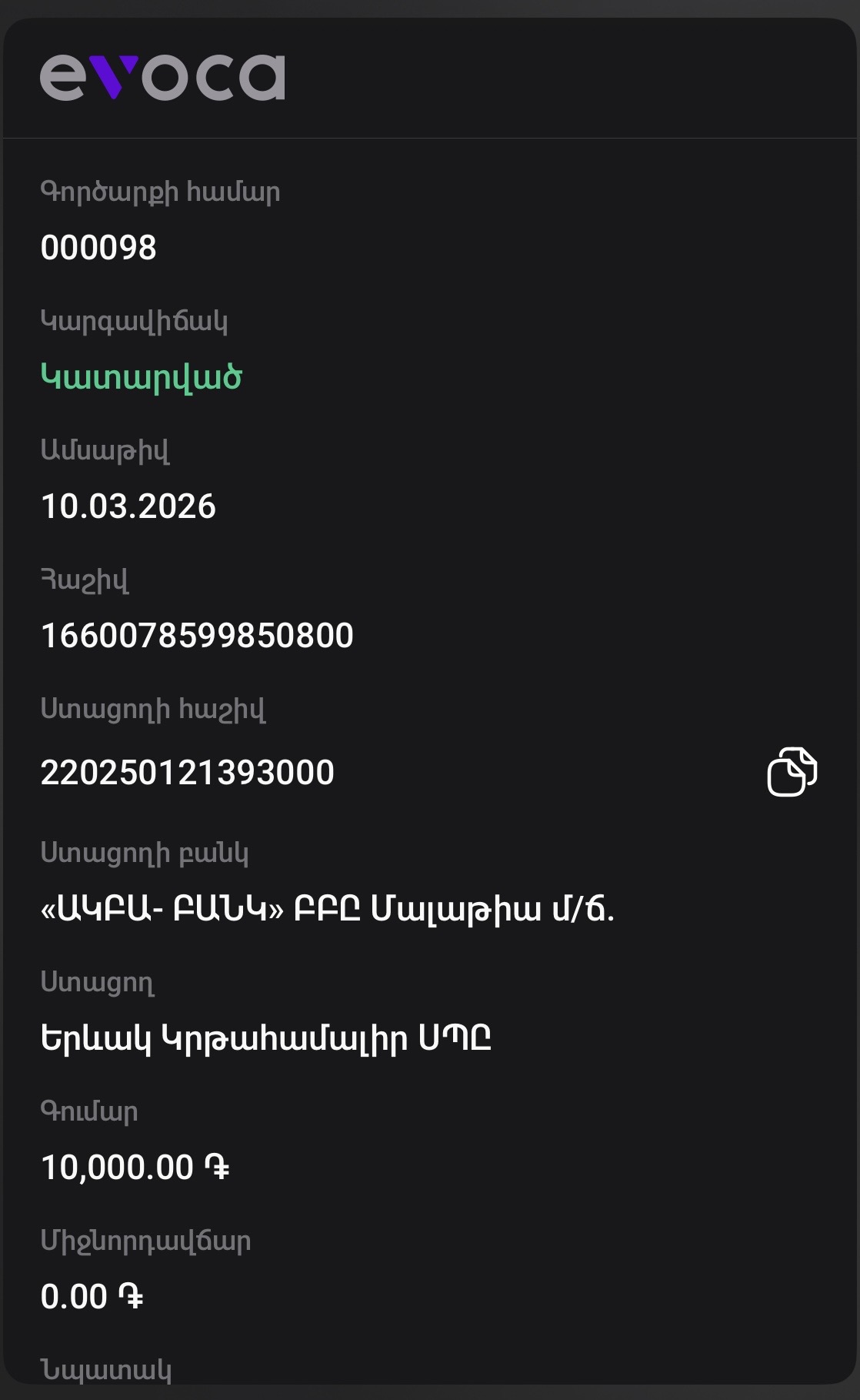 I դասարանցու գրանցման հայտ